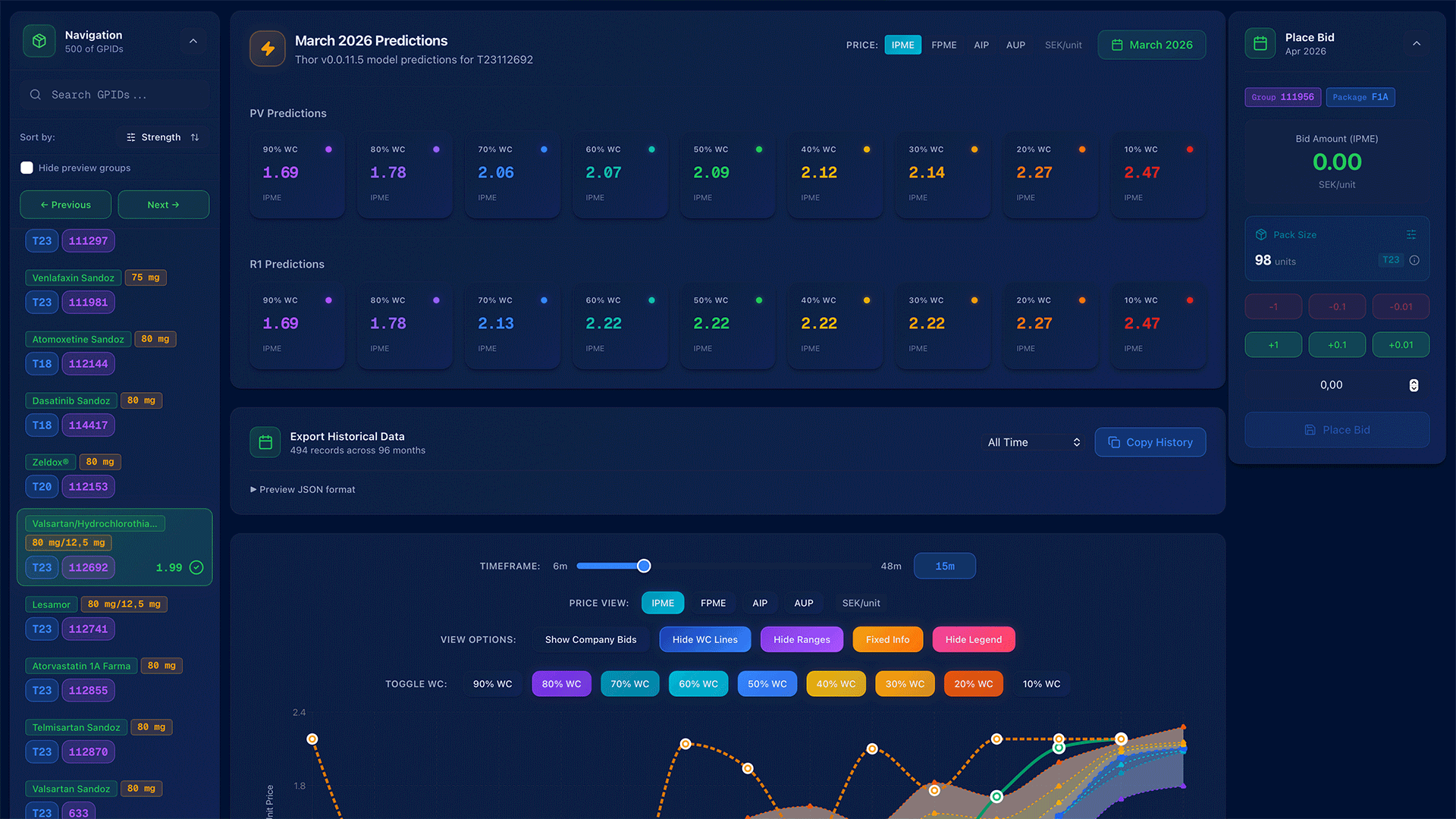 AI-driven pricing precision for generic and off-patent brands bidding in national tenders across Sweden, Finland and Denmark.